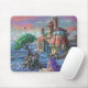 Se você ama as sereias, então esta pintura é para você. O Castelo de Sereia pintado por Traci Van Wagoner apresenta uma sereia com cabelo roxo na frente e uma sereia com cabelo verde se soltando em ilhas rock enquanto outra sereia com natações de cabelo cor-de-rosa no oceano diante de um castelo com um céu roxo, laranja e amarelo por trás. Esta bela e caprichosa arte da fantasia faz um presente de excelente e uma decoração espantosa para o seu escritório ou casa.
