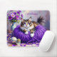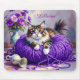 Mousepad Cat in Purple Yarn and Flowers Personalized