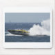 Cauda enorme do galo do pulverizador de um piloto a pouca distância do mar do powerboat.