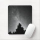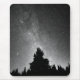 Esta foto preto e branco caracteriza um céu nocturno sobre a floresta.