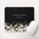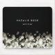 Mousepad personalizado por chic exibe seu nome, nome comercial ou escolha de texto personalizado em um fundo preto com uma borda inferior de luzes luminosas de chavão em tons de branco e champanhe