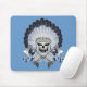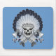 Este crânio Chefe Indiano com tomahawks e morada de penas é desenhado em tons de azul. Se você quer um crânio único, este crânio indiano tem certeza de que vai receber muita atenção!