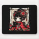 Mousepad Chibi Kimono Girl Black Cat Flowers Japanese Art W