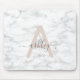 Mousepad Chic Blush White Marble Script Name Monogramo