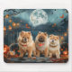 Libere o espírito assustador com esta design sombria do Dia das Bruxas apresentando um bando de cachorros sob um céu escuro e iluminado, cercado por morcegos voadores e abóboras brilhantes. Perfeito para aqueles que amam um toque de diversão terrível com seus amigos peludos!