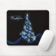 Christmas Party Blue Tree Shiny Black Elegant Mouse Pad. Unique, beautiful, stylish design. Easy to be personalized. Font style, size and colors can be changed. Matching items are available.