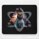 Um adesivo brincalhão e peculiar com um gato preto vestido de astronauta, flutuando no espaço cercado por aliens e um átomo brilhante. Perfeito para fãs de ficção científica e amantes de gatos.