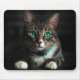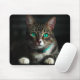 Mousepad Cinzas e Gato Branco com Olhos Azuis e Colar Corre