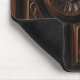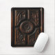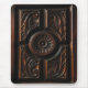 Este mousepad é decorado com uma imagem de uma madeira artística bonita que cinzela nas máscaras do marrom, do ouro, do mogno e do preto. Uma imagem circular abstrata central da flor tem as pétalas irradiar para fora a um círculo cinzelado que seja cercado por quatro seções. Cada seção tem carvings abstratos da folha.