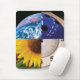 Um design quadrado compo de quatro gráficos diferentes (terra, bola de boliche, girassol, & um pulso de disparo) fazendo junto a forma de um círculo no centro