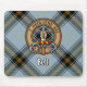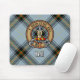 Crachá da crista de Clan Bell rodeado por uma correia e fivela sobre fundo de tartã. Custom Text.