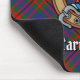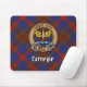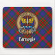 Crachá da crista Clan Carnegie rodeado por uma correia e fivela sobre fundo tartano. Custom Text.