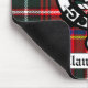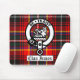 Crachá escocês Clan Innes crest e texto sobre fundo tartano