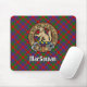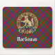 Crachá da crista Clan MacGowan cercado por uma correia e fivela sobre fundo tartano. Custom Text.
