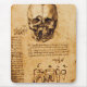 Crânio e dentes dos estudos anatômicos antigos de Leonardo da Vinci, da caneta e da tinta marrom no papel com pergaminho envelhecido velho, efeitos do grunge.