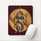 Um design da fantasia para amantes do cobra, geeks do gótico e fãs escuros da arte: Um disco martelado do metal com os ornamento tribais do estilo, uma espada da fantasia e um enrolamento do cobra em torno da lâmina. O design perfeito para seus humores mais escuros!