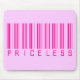 Um código de barras cor-de-rosa quente que rotula o conteúdo como "inestimável".