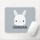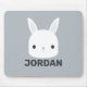 Uma design para animar o seu dia. Este design apresenta um coelho bonito com um nome personalizado no estilo de fonte sans serif moderno da cinza sobre o fundo da cinza de luz. Presentes personalizados perfeitos para crianças.