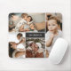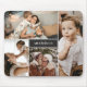 Pasta de mouse de colagem de fotos com quatro fotos ao redor do nome da sua família e inicial em branco e cinza em preto mate. Quatro mouse colage de fotos personalizado com seu sobrenome e inicial.