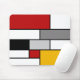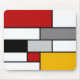Arte abstrato moderna com retângulos coloridos (vermelho, cinza, preto, amarelo, branco) no estilo Mondrian em fundo branco para todos que gostam de designs geométricos simples e modernos.
