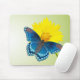 Mouse com uma linda borboleta Admirável Roxo Roxo Ridículo, alimentada numa flor amarela de Coreopsis sobre um fundo verde-claro. Traga o verão para a sua mesa com este colorido mouse!
