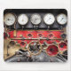 Os maquinistas de comboios a vapor veem a partir da placa de apoio dos manômetros e comandos do comboio.