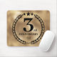 Mouses pads de escritório no estilo folha de ouro do 3º aniversário com logotipo comercial e ano. Design comemorativo com galho e estrelas. O logotipo pode ser alterado para texto clicando no botão para editar o design.