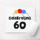 Três balões das cores preliminares e texto preto que lê a "comemoração de 60" em 60th cartões de aniversário, t-shirt, canecas, e mais.