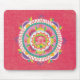 Um teste padrão floral da mandala no roxo e um rosa macios, pastel. Artista: Harriet Sussman