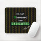 Este mousepad de fundo preto tem um padrão de repetição de 0 e 1 em laranja inspirado em binários, e a citação "Não sou obcecado Sou DEDICADO" no centro. O O de Obcecado tem o estilo de se parecer com um botão de energia verde do computador. Há também uma opção de personalização - digite o nome, as iniciais ou o texto da sua escolha, que aparece no script branco (ou exclua isso se não for necessário).