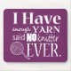 Mostre que seu amor para o fio e todas as coisas que fazem malha ostentando este impressionante "mim têm bastante fio, não disseram nenhum knitter nunca!" citações! Igualmente faz um grande presente para a pessoa toting da agulha loving do fio em sua vida! Recorde, você pode NUNCA ter bastante fio!!