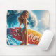 Mousepad Confident Surfer Girl Walking Beach Waves Art