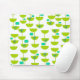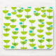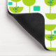 Este mouse pad tem uma design moderna do século Médio de meio-círculos verdes que se parecem com copos amarrados com torres de tartaruga e retângulos.