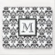 Cor damasco preto e branco 2 do vintage com seu monograma, inicial, nome ou texto. Um bonito, divertimento, design à moda faz um presente perfeito para ela. Damasco feminino com redemoinhos e pontos.