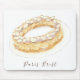 Uma deliciosa imagem de tinta e aquarela de uma massa Paris-Brest. A pastelaria foi criada em 1910, com o nome e criada para comemorar a corrida de bicicleta Paris-Brest-Paris. Uma imagem saborosa para a sua mesa!