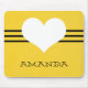 Doce e encantador Mousepad Cardíaco Moderno com fundo amarelo, coração bonito e borda listrada. Este bonito e giro mouse irá adicionar estilo a qualquer espaço de trabalho. Personalize com o texto de sua escolha. Clique em "Personalizar" para encontrar opções adicionais de personalização.
