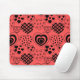 Este mouse pad tem um design de repetição de corações com diferentes dentro gráficos em um campo de branco.