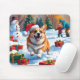 Mousepad Corgi Correndo na Neve com Chapéu de Natal