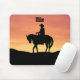 The silhouette of a cowboy riding a horse against a sunset sky is the perfect mouse pad for anyone who loves horses, Western riding, and the cowboy life.