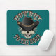 Crânio de cowboy com flecha através do chapéu e mensagem "COWBOY TO THE BONE".