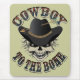 Crânio engraçado de cowboy com flecha através de seu chapéu e texto de COWBOY PARA O OSSO.