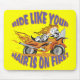 Este esqueleto de motocicleta com cabelo flamejante é um design divertido para o motociclista. O texto lê "RIDE" COMO SE SEU CABELO ESTIVESSE EM FOGO!