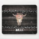 Crânio de Vaca Floral Rústico Boho Chic Glam Prateado Suporte de Mouse de Madeira