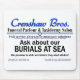 Crenshaw Bros. Alternativo Mortuary Solutions promocional propaganda do pacote Burial no mar. Escuro, macabro humor funerário no seu melhor. A linha Hilarious Crenshaw é paródia de serviços mortuários e técnicas de marketing gonzo da idade viral mais um pouco de humor "dorme com os peixes" jogado para boa medida.