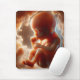 Uma forma fetal humana suga seu polegar cercado por um ambiente etéreo brilhante que destaca suas delicadas características