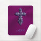 Mousepad Cruz gótica em roxo com aspecto embutido com monog