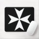 Uma cruz maltesa branca sobre fundo preto... uma das insígnias atribuídas ao Cavaleiro Hospitalista.