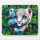 Folhas Tropicais Em Toneladas Azuis E Verdes Com Um Pão De Rato Branco De Centro-Leopardo