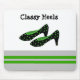 Um par clássico de designer salta a preto com bolinhas e aparas verdes.