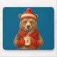 Mousepad Cute Bear With Santa Hat Coffee Lover Funny Winter